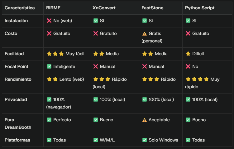 Recomendación para arquitectos: BIRME para configuración rápida inicial. XnConvert si procesas 1000+ imágenes regularmente.