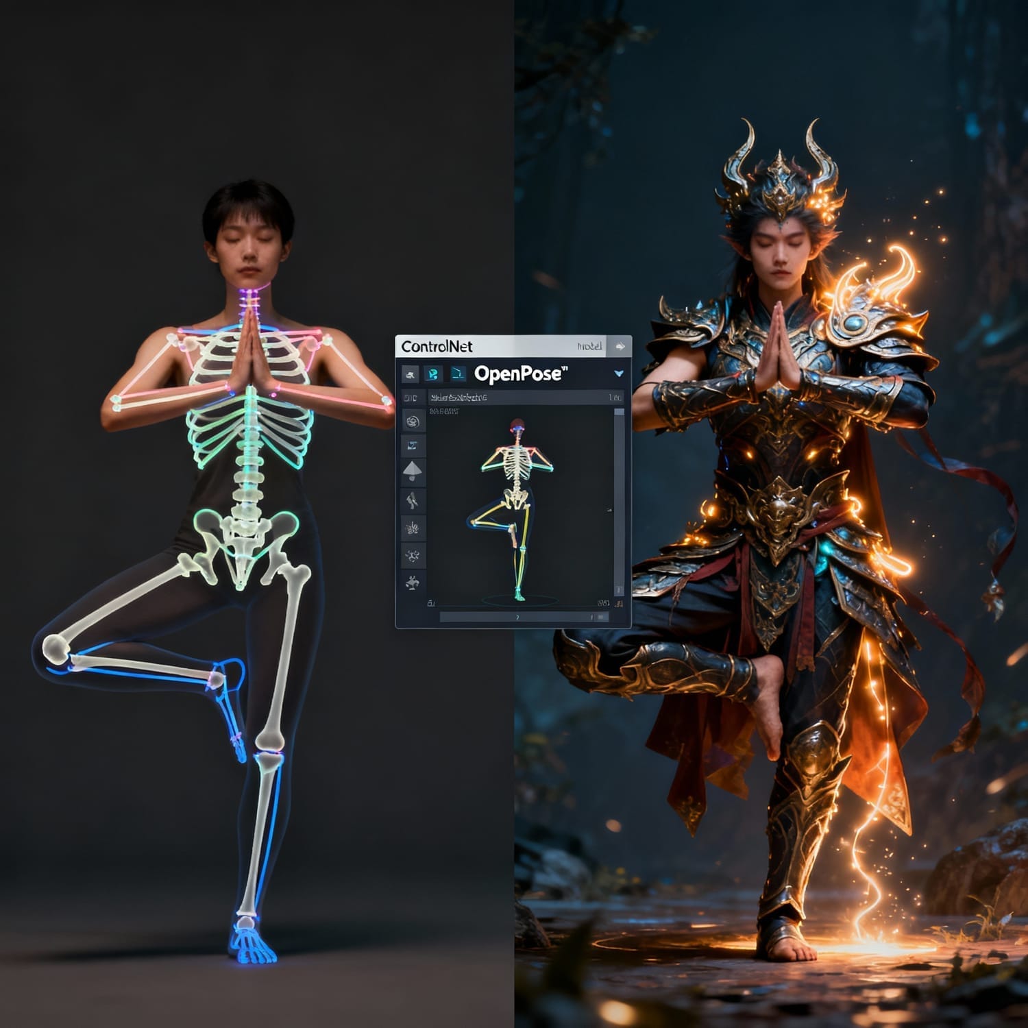 ControlNet, Stable Diffusion ControlNet, OpenPose poses IA, Control composición imágenes, Extensión AUTOMATIC1111, ControlNet instalación, Generar imágenes con control, Profundidad IA generativa, Canny detección bordes, ControlNet tutorial