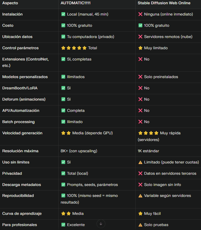 Interface web para ejecutar Stable Diffusion localmente con control total sobre parámetros y extensiones.